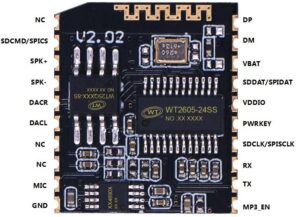 WT series Bluetooth chips have the characteristics of low cost, low power consumption, high reliabilityand strong versatility. URAT serial communication control supports Bluetooth audio playback, Bluetoothcalls and BLE data transmission functions. it also supports local audio playback (MP3/WAV). format),supports SPl-Flash, TF card, and U disk as storage, with functions such as fle index playback, insertion.single loop, all track loop, random play, 31-level volume adjustment, etc., and can support up to 128Mbitexternal Flash , 32G TF card and 32G USB flash drive.